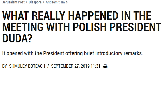 Swój artykuł rabin Boteach zatytułował „Co naprawdę wydarzyło się na spotkaniu z prezydentem Dudą” („WHAT REALLY HAPPENED IN THE MEETING WITH POLISH PRESIDENT DUDA?„)