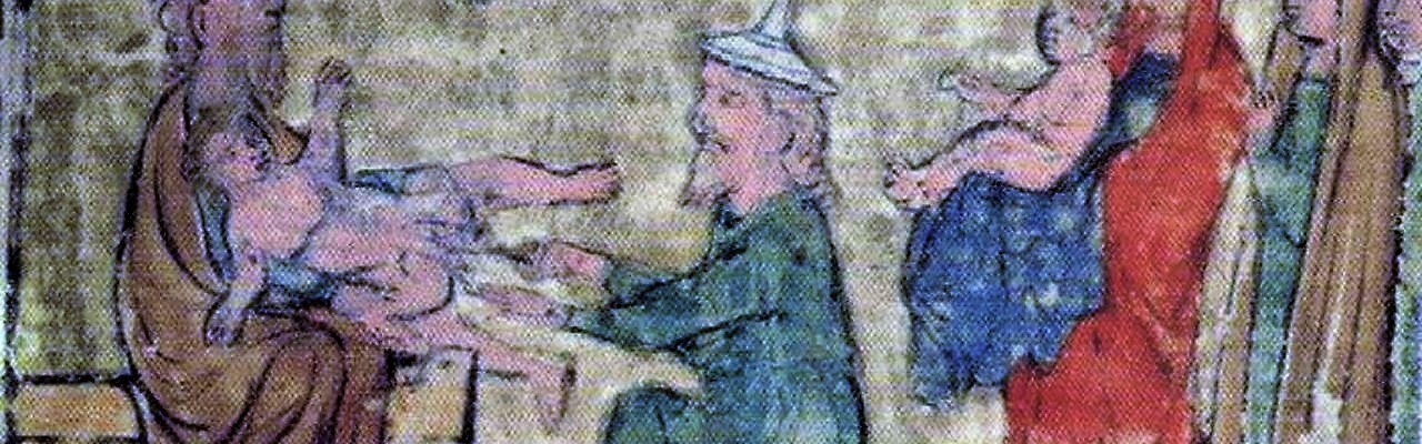 Ilustracja: „Obrzezanie Izaaka”, Pięcioksiąg Regensburski, ok. 1300)