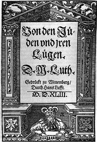 W swoim traktacie „O Żydach i ich kłamstwach” (niem. „Von den Jüden und ihren Lügen„), wydanym po raz pierwszy w 1543 roku, Luter wzywał do traktowania Żydów w następujący sposób: