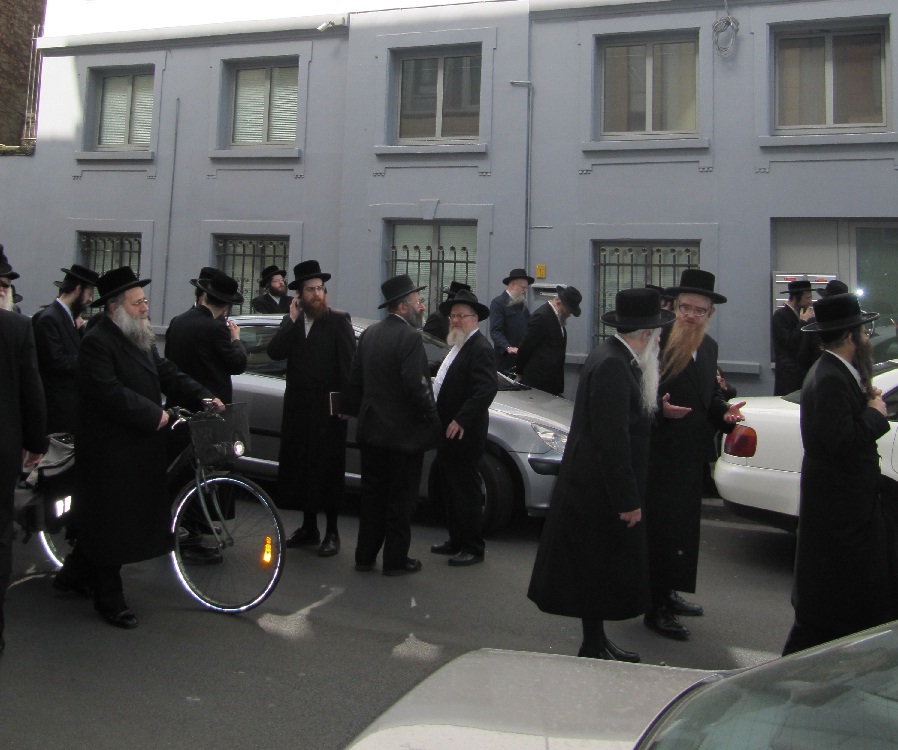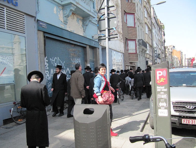 Od zachodu słońca w piątek do wschodu słońca w niedziele chasydzi żyją w granicach wyznaczanych przez eroev. Eroev w Antwerpii jest wyjątkowy, jest jedynym, który obejmuje całe miasto, na przykład, Paryżu czy Nowym Jorku jest ograniczona do jednego obszaru lub zaledwie kilka ulic. Eroev przebiega „po zielonej ścieżce” wzdłuż linii tramwajowej 59 między kanałem Skaldy i obwodnicami wokół miasta. Ciągłość tej rozpiętej na wysokości 6 metrów liny jest kontrolowana każdego tygodnia przez specjalnych wysłanników Rabinatu. Antwerpscy Chasydzi tworząca coś w rodzaju społecznego getta- ”jooden getto” mające dla Żydów specyficzną symbolikę, jak określa to Ludo Abicht, filozof i historyk, autor książki “Żydzi w Antwerpii”. Od czasów II wojny światowej zostało ono zredukowane do okolic Dworca Centralnego, obejmując ok. 20 ulic Diamentwijk, okolic Parku Miejskiego(Stadspark) i Belgiealei. Spacerując po okolicy widać, że przeżywała ona już lepsze czasy. Fasady poszarzały, na bruku ślady rozdeptanej gumy do żucia. Z jednej strony mamy wschodnioeuropejski sztetl w centrum nowoczesnego miasta. Koszerne mięso kupuje się u Dresnera, zatwierdzony przez Rabinat, Farkas handluje drobiem, ryby “pod nadzorem Rabina” sprzedaje Moskovitz a macę i ciasto Kleinblatt. Żydowskie książki natomiast, kupuje się na Simonsstraat u Menczera Lazara, wysokiego postawnego mężczyzny w czarnym chałacie, zawsze uśmiechniętego i zagadującego klientów odwiedzających jego małą księgarnie. Oprócz żydowskich książek można tam kupić mosiężne menory, gazety, znaczki a nawet nagrania z muzyką żydowską. Takie „kleine Warschau” z postaciami jak 80 lat temu na Muranowie. Czas zatrzymał się w miejscu? Mężczyźni, kobiety, ubrani inaczej, mówiący innym językiem. Takie obrazy widać także na ulicach Jerozolimy, Nowego Jorku, Paryża i Londynu. Ten świat przyciąga “gapiów”, dla których jest to jedyna, egzotyczna, żydowska Antwerpia. Pamiętam oburzenie bliskich mi osób, gdy w ogromnym podnieceniu opowiadałam o niedzielnych wycieczkach do Parku Miejskiego, gdzie syciłam oczy widokiem chasydzkich matek z dziećmi. Tłumaczono mi, iż to typowe zachowanie dla kogoś, kto właśnie zachłystuje się kulturą i tradycją żydowską. Nagle budzi się zainteresowanie odległą egzotyką, siłą rzeczy niesłychanie powierzchowne, pełne stereotypów. Przeciętne, jak to przeciętna, jest powierzchowne dosyć. Recepcja kultury żydowskiej zatrzymuje się, zainteresowaniu chasydami czy mistycyzmem. Jednak takie spojrzenie nie odzwierciedla prawdy o społeczności żydowskiej w Antwerpii, Bez Chasydów jest ona na pewno mniej ciekawa dla kogoś patrzącego z z zewnątrz. Z drugiej strony „jooden getto” ma także inne znaczenie, to właśnie tu miały miejsce największe antysemickie ataki, w tym terrorystyczne.
