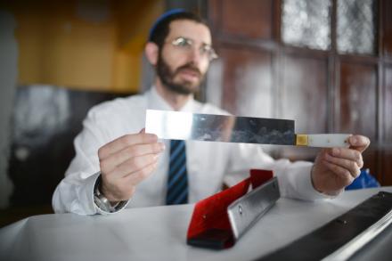 Rabin Ellis: Kolejnym poziomem jest ostrzenie noża. Chyba spędziłem więcej czasu na nauce ostrzenia noża, niż na nauce halachy. Przed każdą szechitą – trzeba dokładnie naostrzyć noże. Trzeba niezwykłej wrażliwości, by zacząć „czuć ostrze”. Żadna maszyna tego nie zrobi. Zajęło mi bardzo dużo czasu, zanim wykształciłem w sobie wyczucie tych ostrzy i nauczyłem się, jak prawidłowo się nimi opiekować. To jest zupełnie kluczowa sprawa.