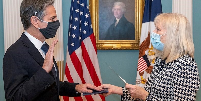 Na zdjęciu: Antony Blinken zostaje zaprzysiężony jako Sekretarz Stanu (styczeń 2021)