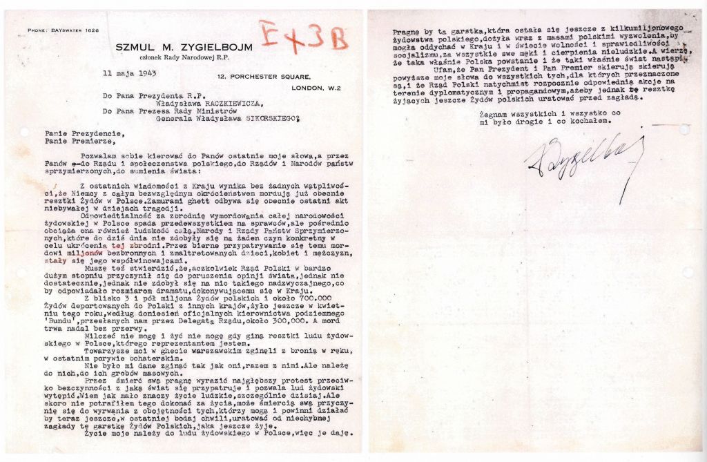 W 1942 roku, kilka miesięcy przed swoim samobójstwem w Londynie w maju 1943 roku, Szmul Zygielbojm napisał: