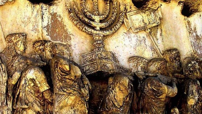 Na zdjęciu: menora na Łuku Tytusa (82 rok wspólnej ery) została wyrzeźbiona przez ludzi, którzy WIDZIELI na własne oczy autentyczną menorę, zrabowaną ze Świątyni Jerozolimskiej (zburzonej 12 lat wcześniej) i przywiezioną do Rzymu. Dlatego ta płaskorzeźba posłużyła jako wzorzec dla menory służącej za symbol państwowości Izraela (11 szewat 5709, czyli 10 lutego 1949). (redakcja)