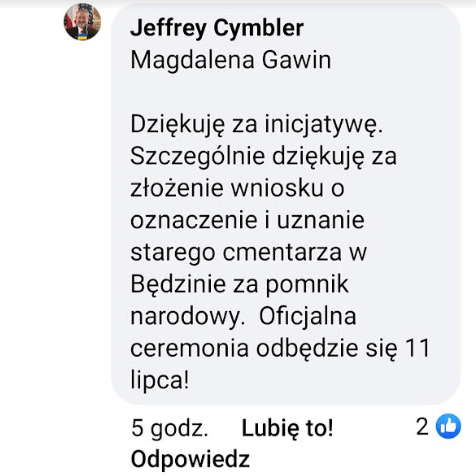 Jeffrey Cymbler – Strażnik Pamięci o społecznościach żydowskich, o ofiarach Zagłady i ludziach udzielających im pomocy.